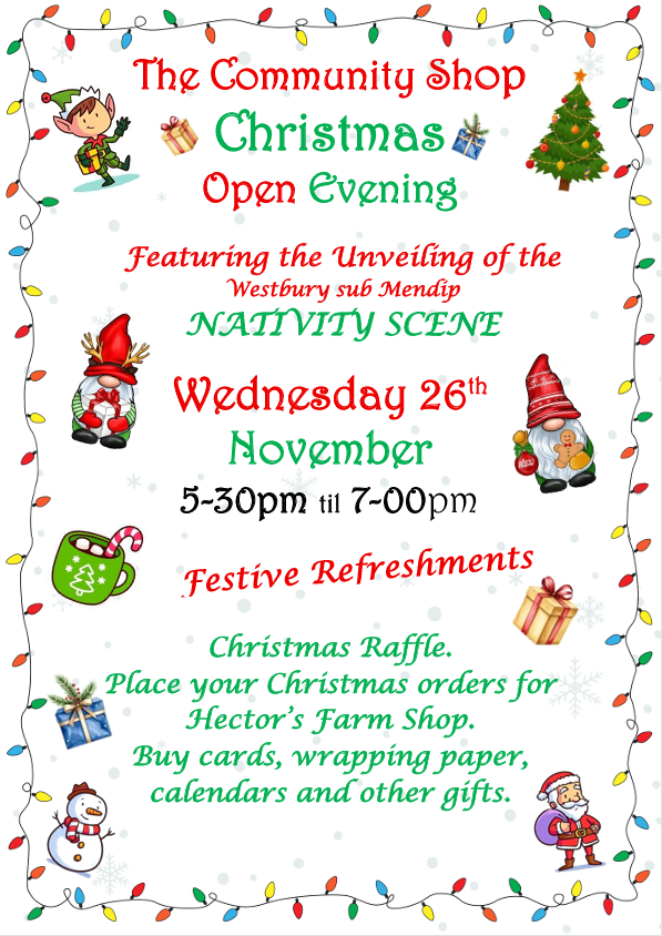 There will be Christmas refreshments and the shop will be open to buy your wrapping paper, Christmas cards, chutneys, cheeses and more...