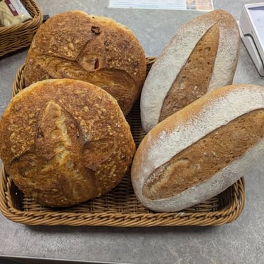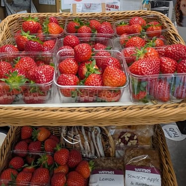 Fruit, vegetables, cheeses, meats, honey, and eggs from nearby suppliers.